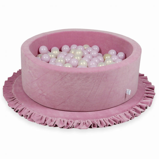 Tapis d'éveil 100cm pour enfant, rond avec volant, Velours Doux Rose