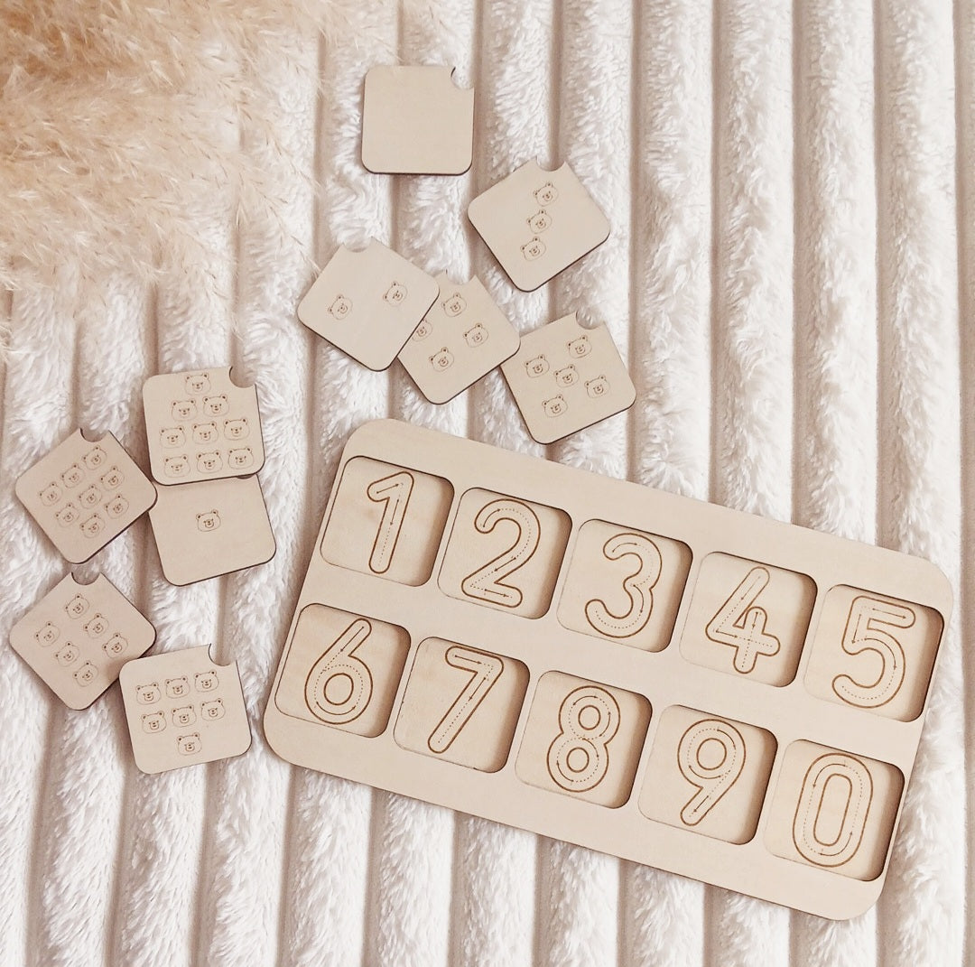 • Apprentissage des chiffres de 0 à 9 : chaque chiffre possède sa forme gravée pour aider l’enfant à les reconnaître et à les tracer du bout des doigts.