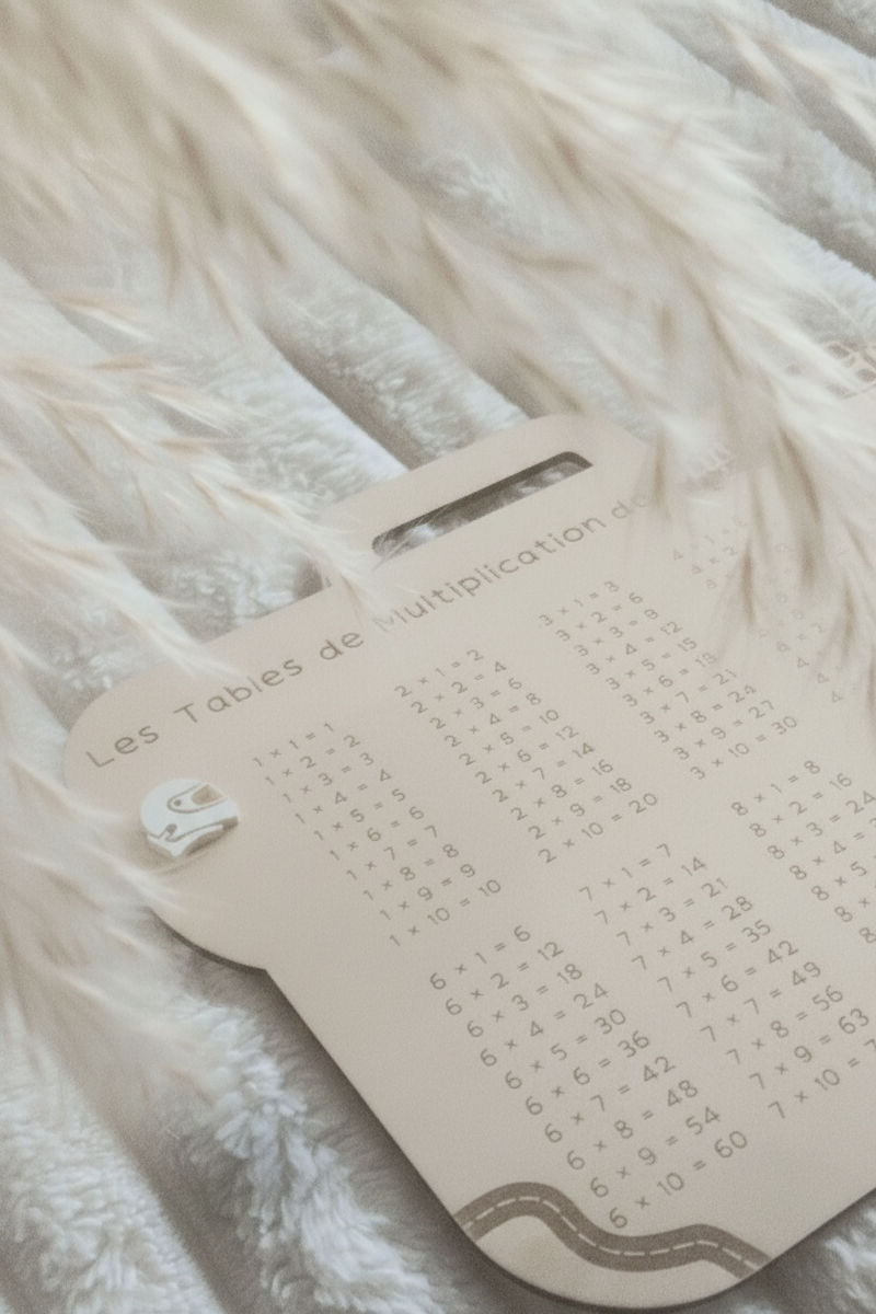 Apprendre les tables de multiplication devient un vrai plaisir avec ce joli support en bois naturel, gravé avec soin et personnalisé au prénom de votre enfant.