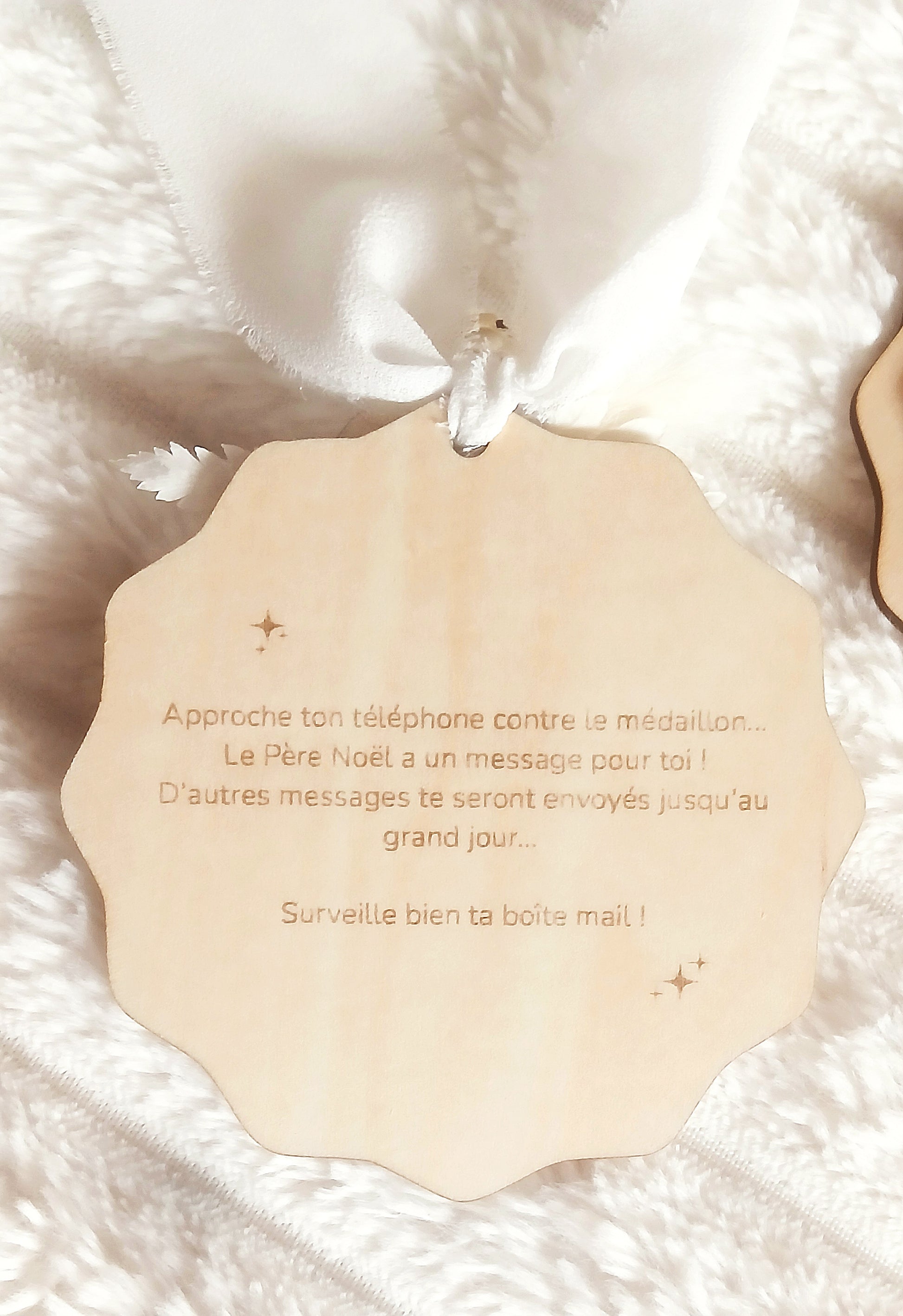 Il suffit d’approcher un téléphone du médaillon pour découvrir un message spécial du Père Noël sur notre site.